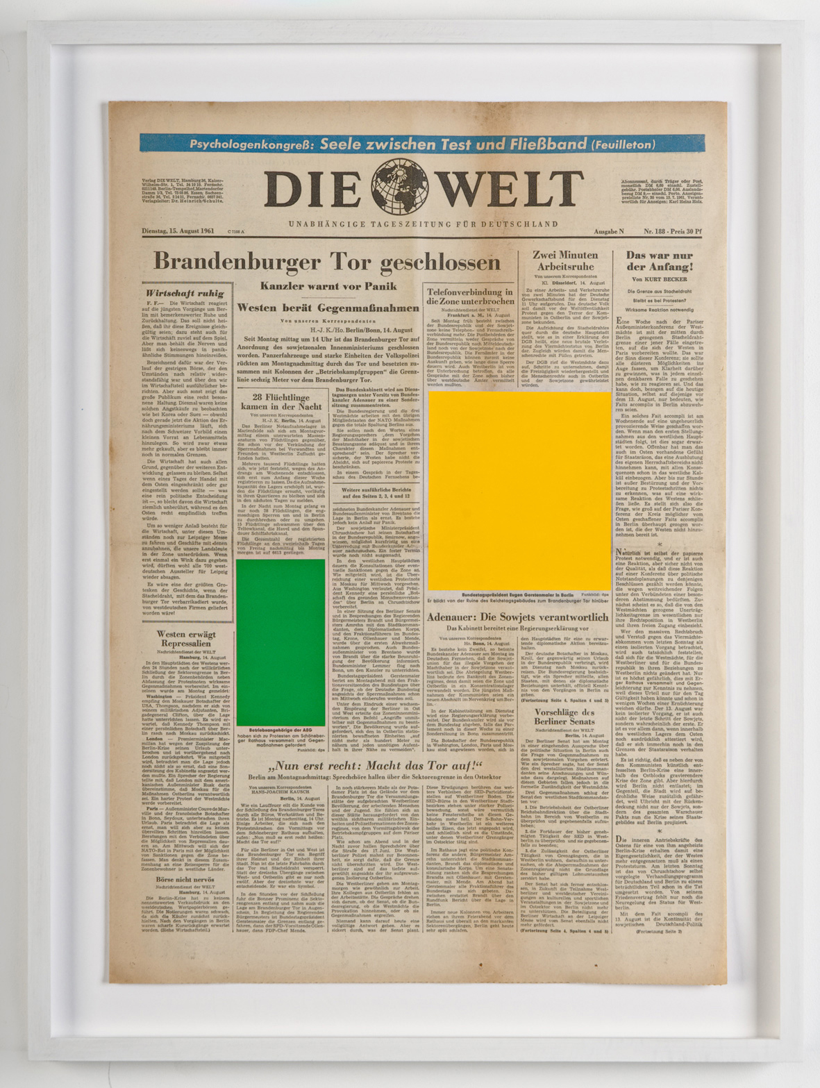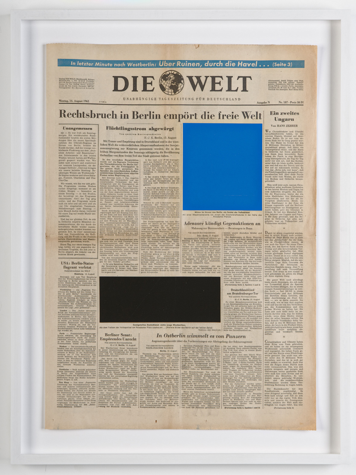 Die Welt: Building the Berlin Wall (August 14, 15, 17, 25, 1961)