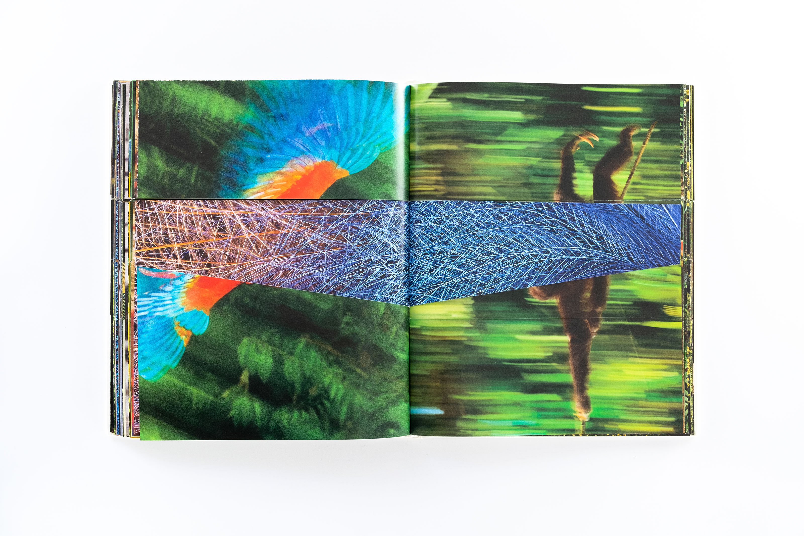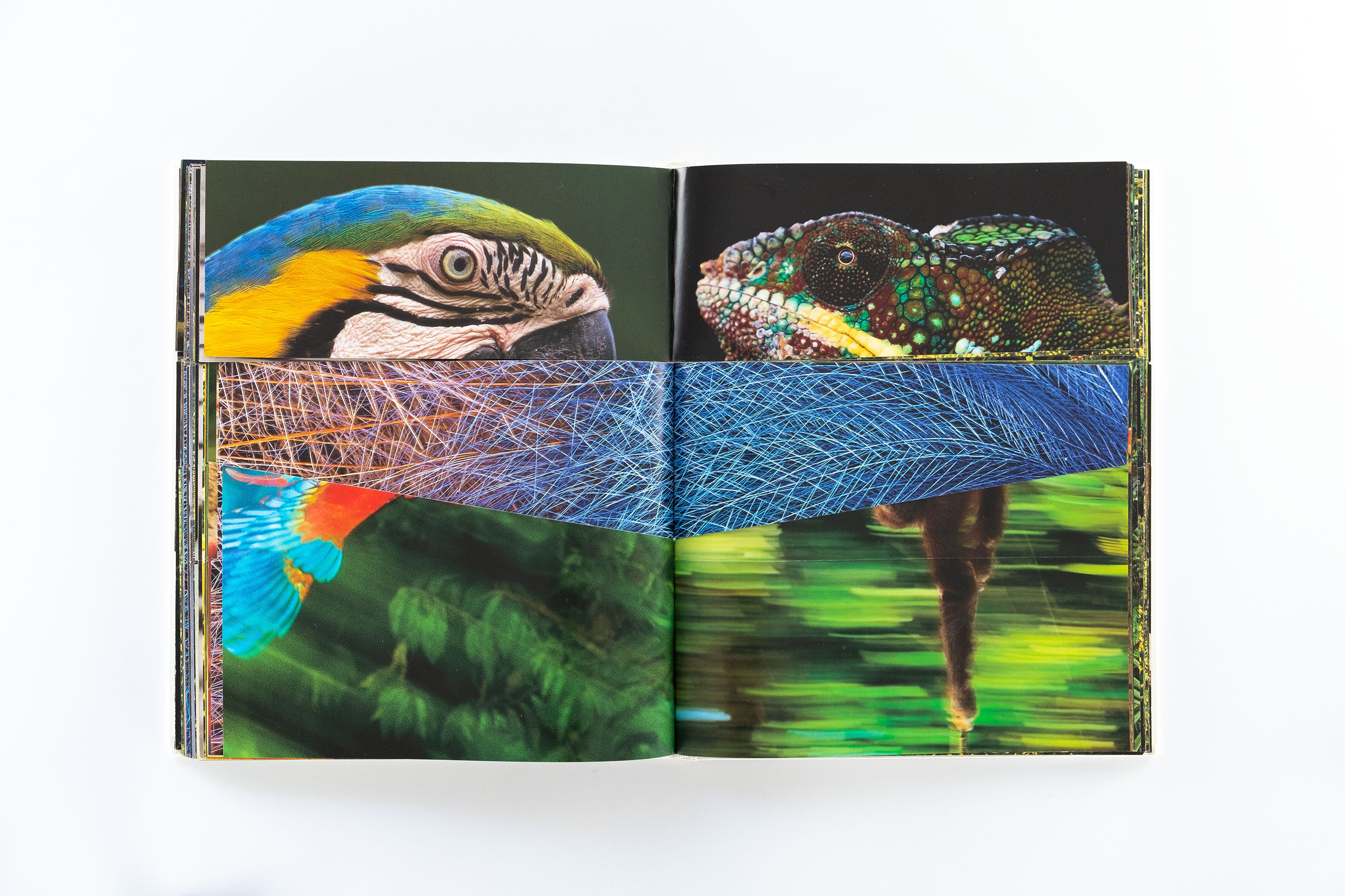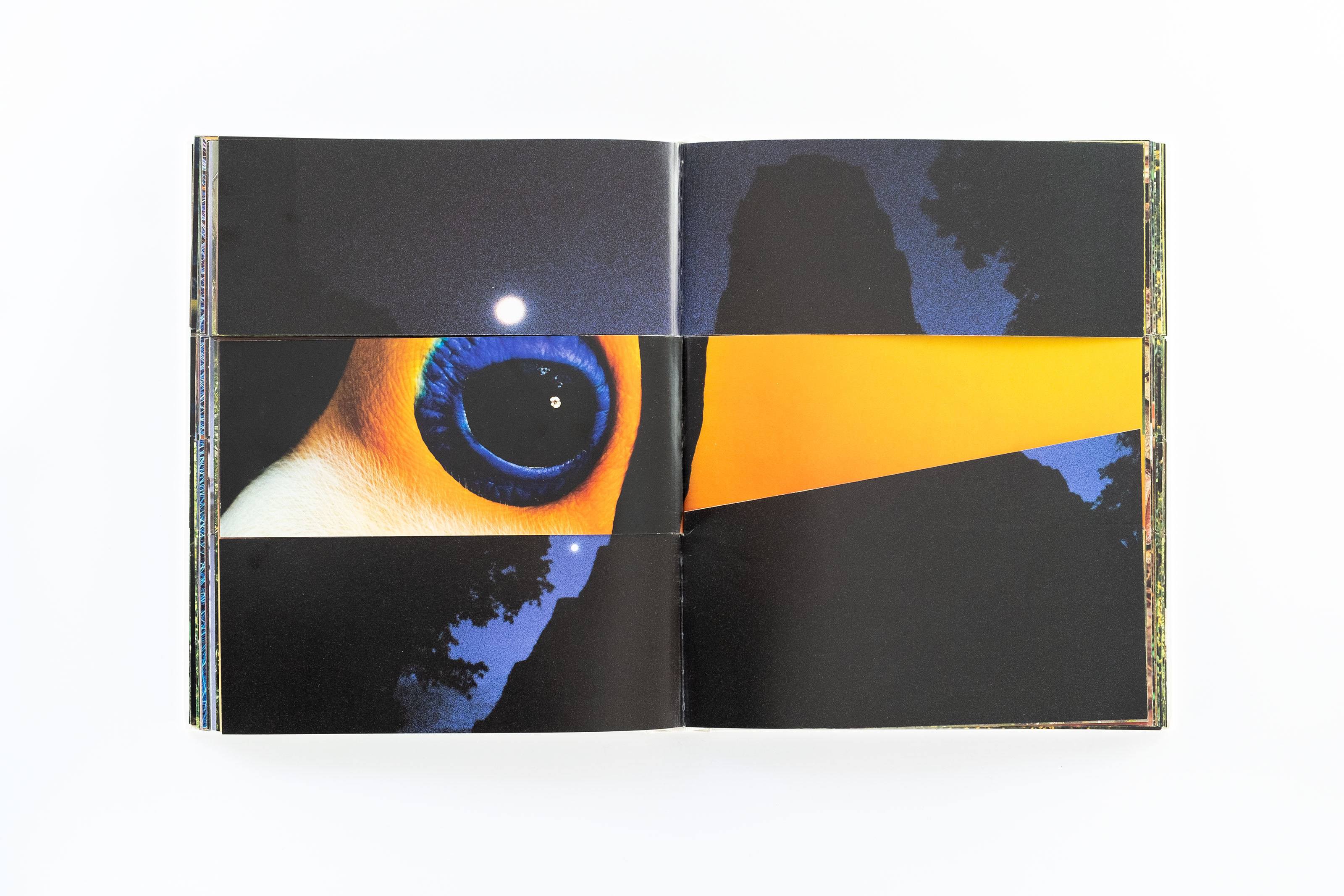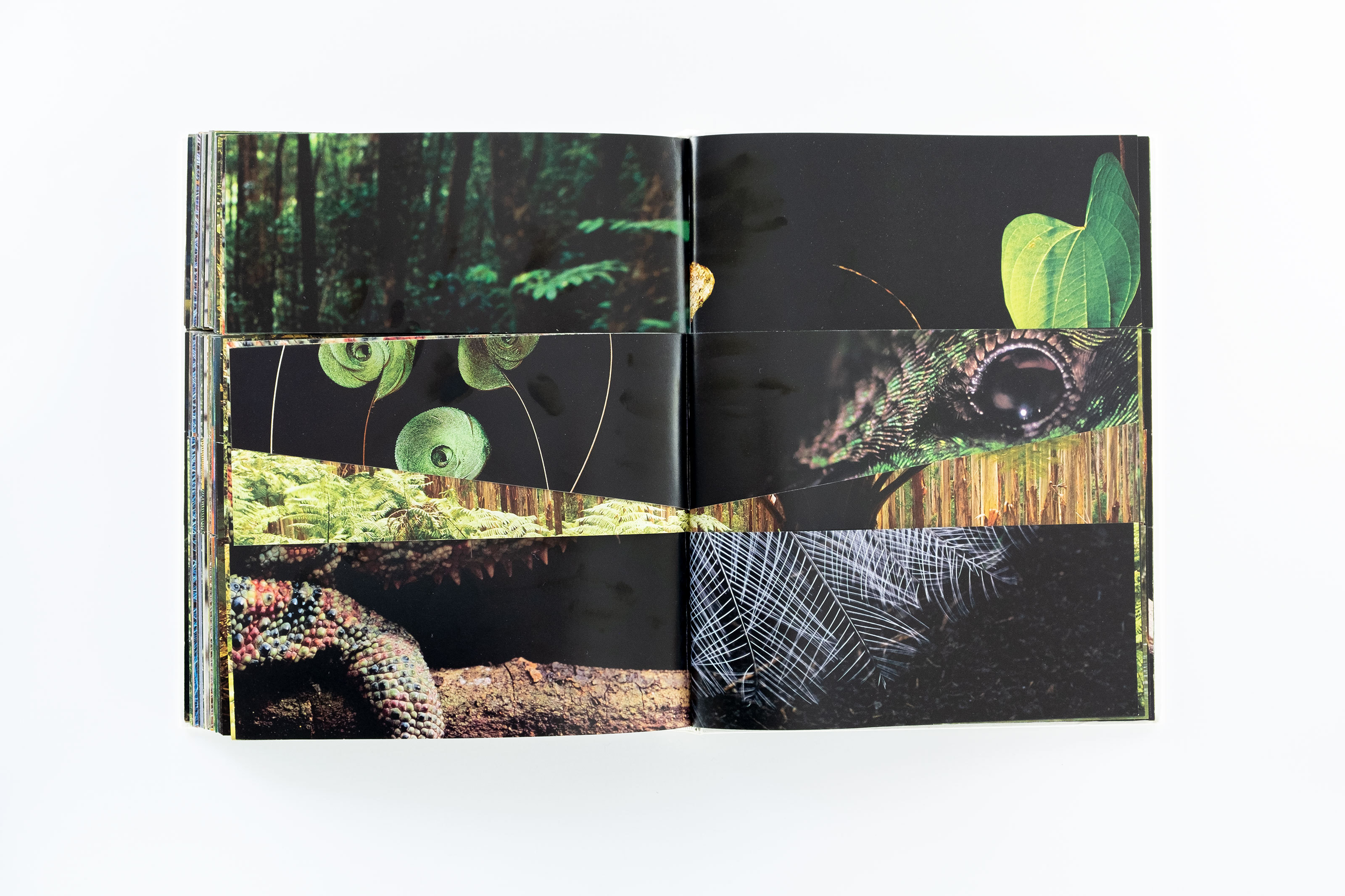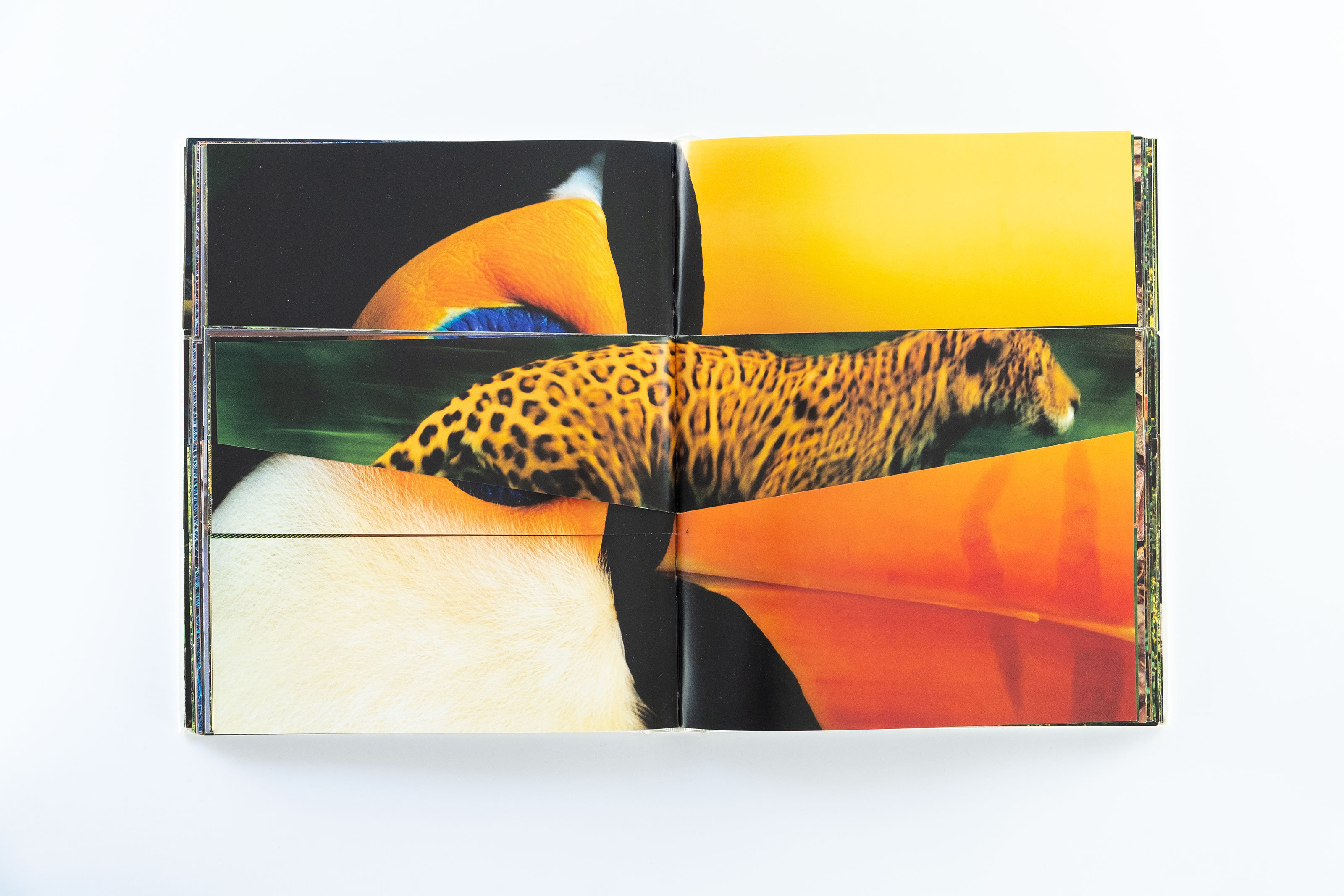 This book is a collection of images where pages are sliced in different ways, allowing for multiple combinations. Viewers are invited to turn the pages to create their own editing.