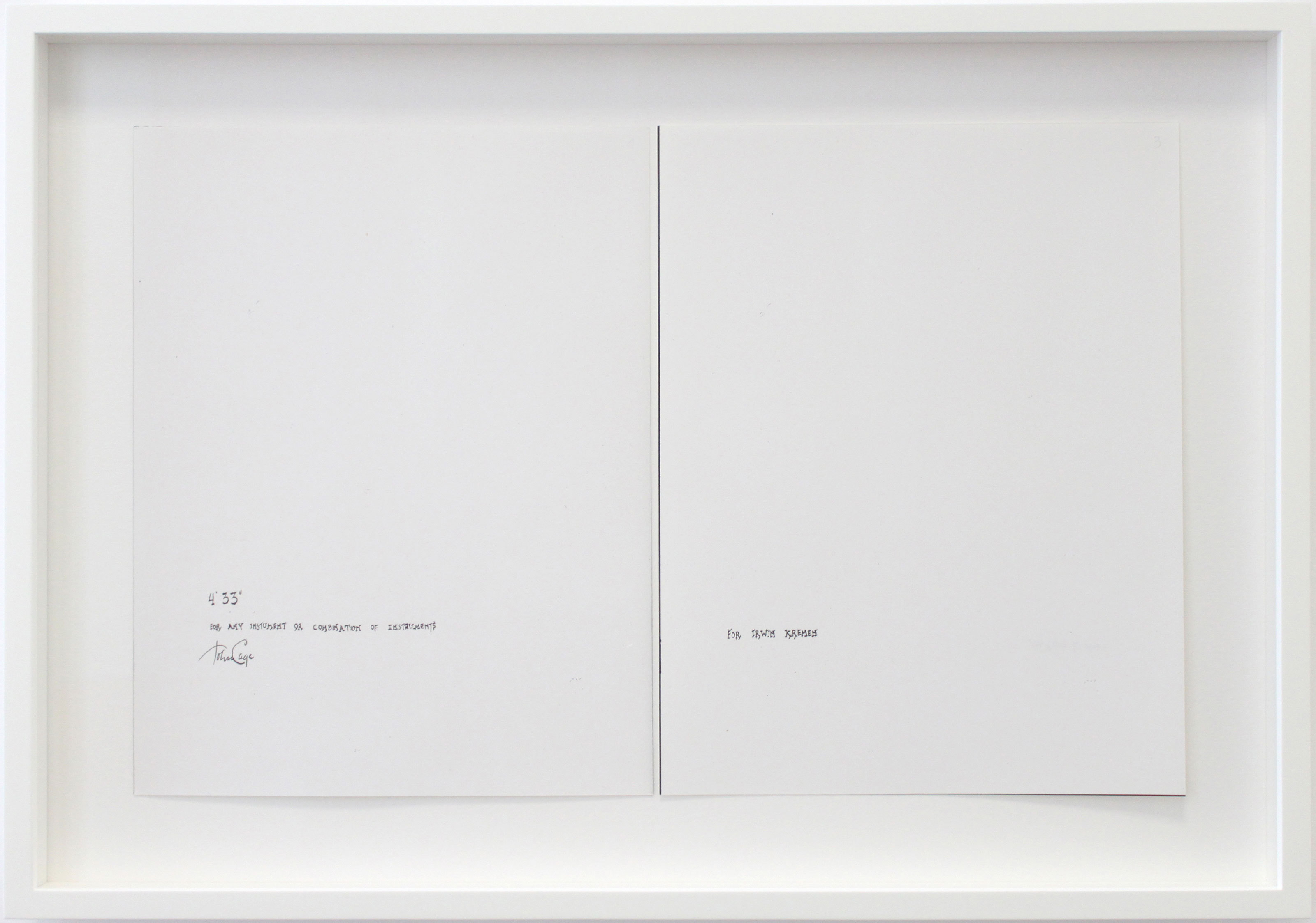 Clippings onto the second reproduction of John Cage’s lost original score of the 4’33” silent piano piece published in Sounds Like Silence, John Cage 4’33” Silence today, Ed. Dieter Daniels / Inke Arns, Spector books, 2012