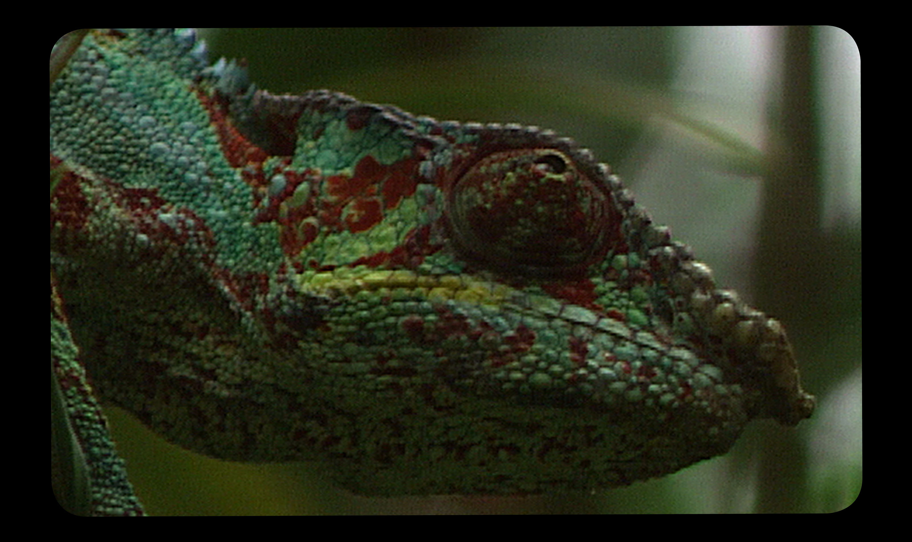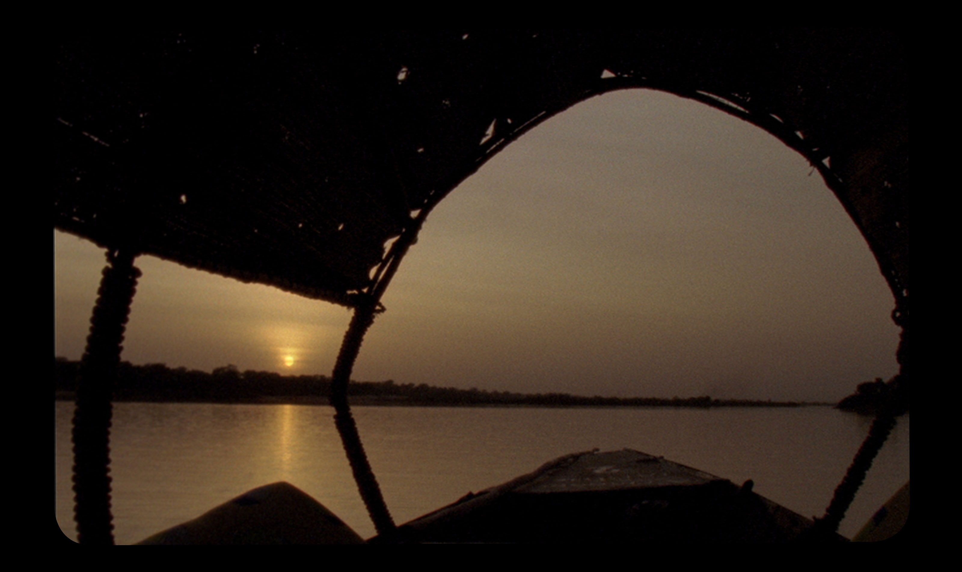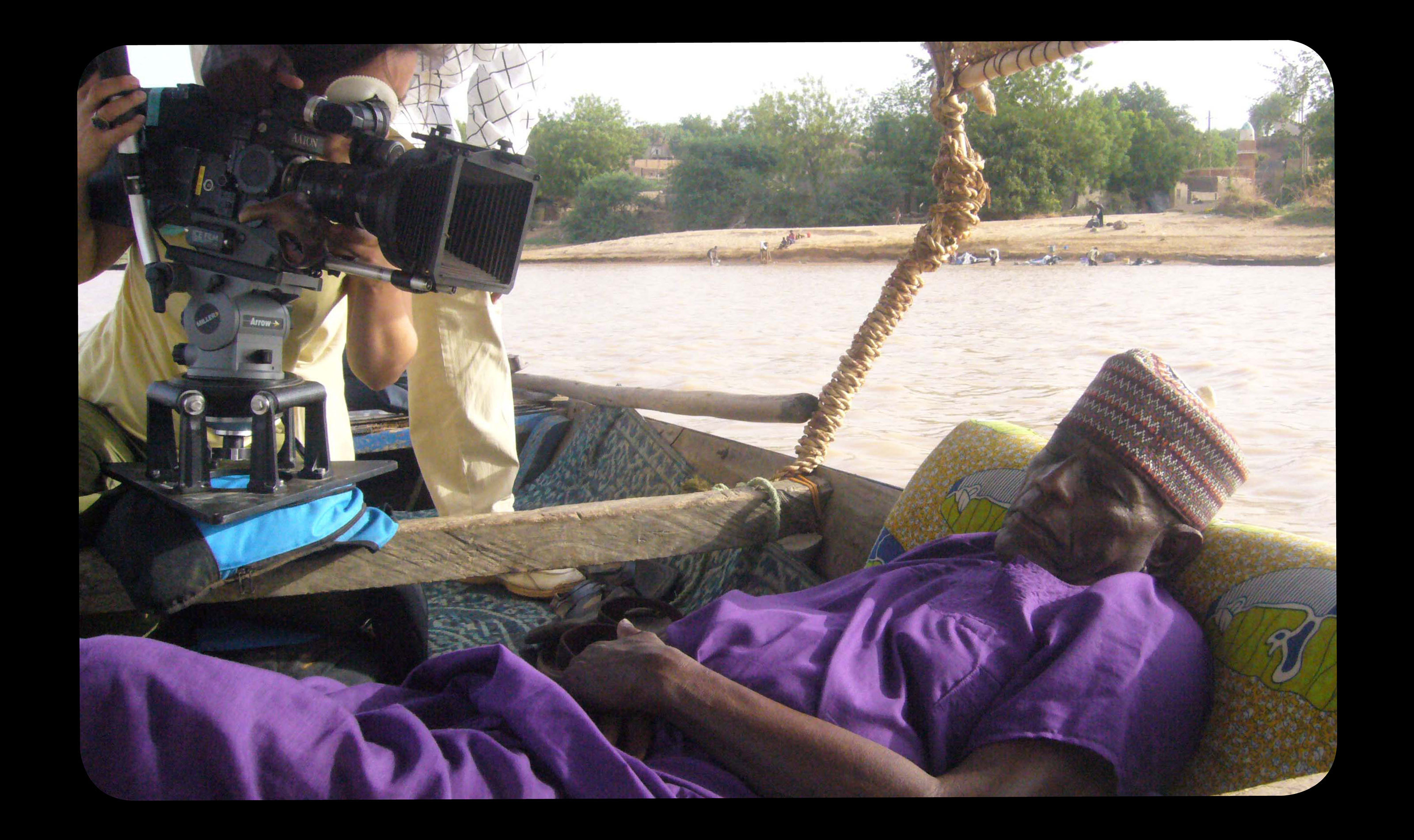They are heading upstream on their pirogue to a village where an unofficial “Holley” ceremony — an animist Songhay ritual — is due to take place. During the celebration the camera is bewitched and reveals the figure of a chameleon. The reptile’s change of colour and its ability to camouflage are placed in parallel with the ability of the camera to become an invisible eye and to be at the service of this condition.